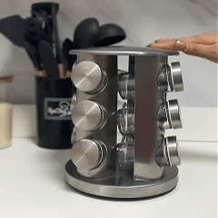 O Porta-Temperos Giratório Profissional Inox com 12 Potes de Vidro organiza os temperos em um único ponto da bancada. Esse organizador de temperos giratório possui estrutura em aço inox resistente e sistema de giro 360º, permitindo acessar qualquer tempero com apenas um movimento. Os 12 potes de vidro com dosador facilitam o uso na hora de cozinhar e ajudam a evitar desperdício. Além de funcional, o suporte cria aquela sensação de cozinha organizada e bem planejada, mesmo em espaços compactos.